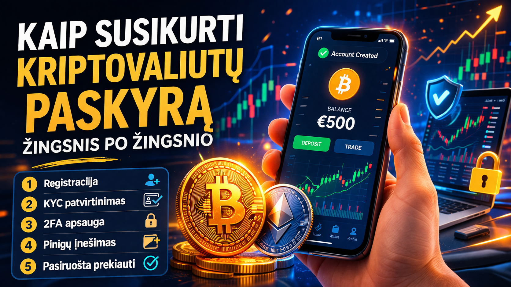 Susikurti kriptovaliutų paskyrą yra paprastas procesas, jei žinote pagrindinius žingsnius. Svarbiausia pasirinkti patikimą platformą, tinkamai apsaugoti paskyrą ir neskubėti priimant sprendimus.