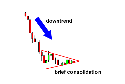 Bearish Pennant susiformuoja staigaus kritimo metu.
