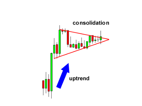 Po staigaus kilimo ar kritimo pirkėjai arba pardavėjai daro trumpą pauzę, o kaina pradeda konsoliduotis mažame diapazone.
