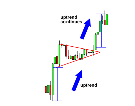 Dažniausiai Pennant neužbaigia trendo, o tik leidžia jam trumpam sustoti prieš tęsiant judėjimą ta pačia kryptimi.