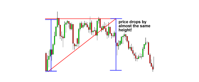 • kaina dažnai juda atstumu, kuris yra panašus į Triangle aukštį