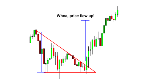 Dažniausiai Triangle laikomas continuation pattern, tai reiškia, kad po modelio pabaigos kaina linkusi tęsti judėjimą ta kryptimi, kuria judėjo prieš jam susiformuojant.